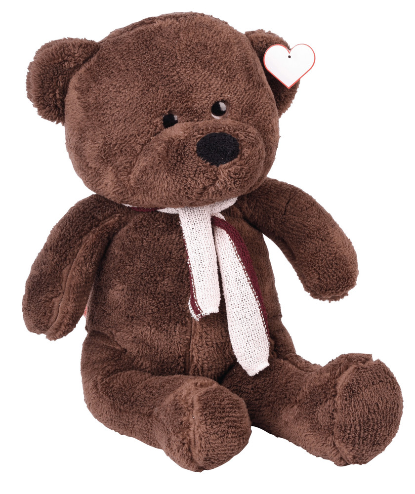 Großer Plüsch-Bär RICO: mit weichem Fell und zweifarbigem Schal, mit Herz zum Bedrucken - Made in Europe