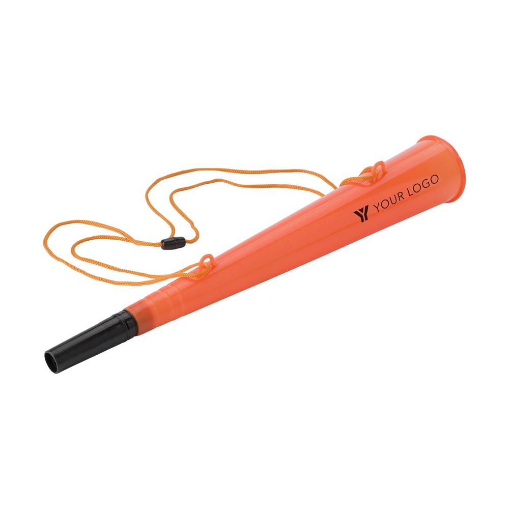 Fussball-Horn aus Kunststoff, inkl. Kordel und Sicherheitsverschluss. Länge der Kordel: ca. 100 cm.