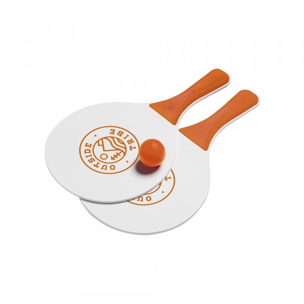 Sportliches Strandset: 2 Schläger aus MDF-Holz mit PP-Kunststoffgriffen und Gummiball. Kompakte Größe. Pro Set in einem Netz zur Aufbewahrung. ACHTUNG: Bei einem 2-Farbendruck auf den Schlägern ist keine perfekte Passgenauigkeit möglich - dies ist nur gewährleistet, wenn sich die Farben nicht berühren.