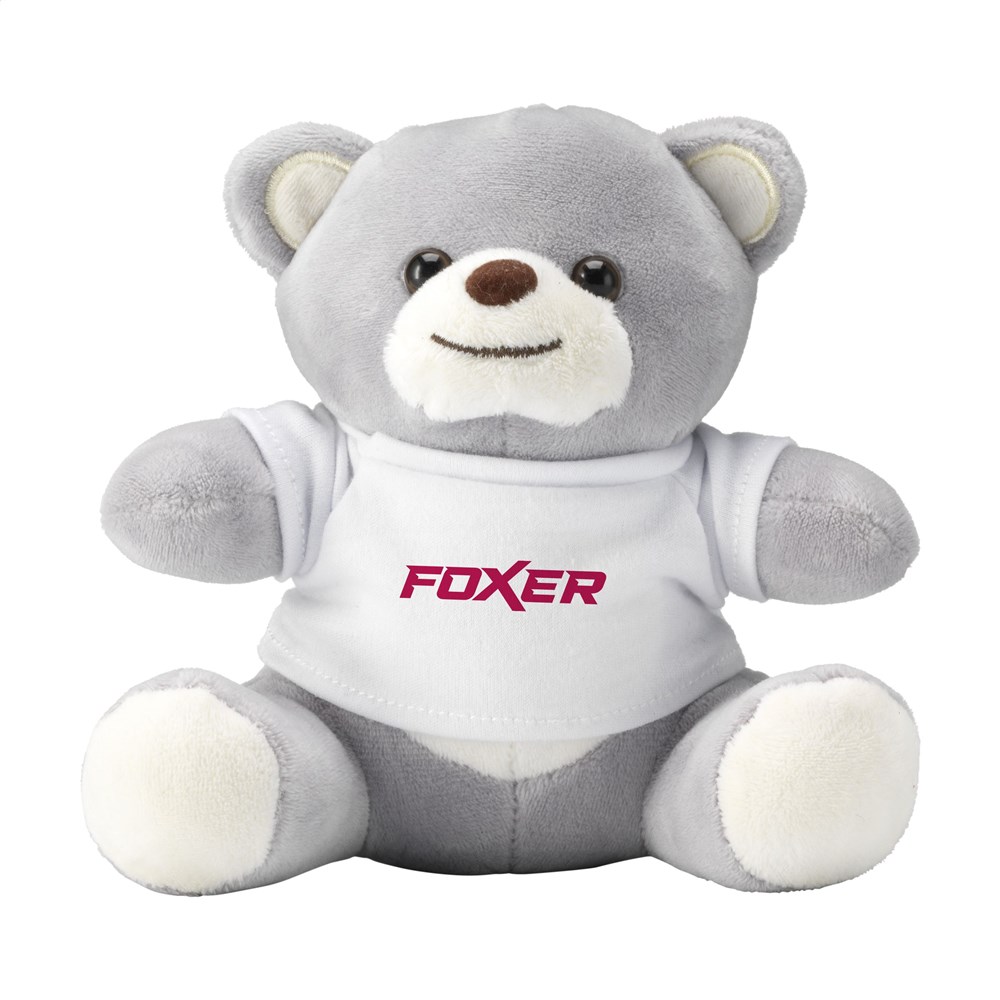 Hellgrauer, superweicher Kuschelbär in Minigröße. Mit Glasaugen, harter Nase und weißem T-Shirt.... mehr