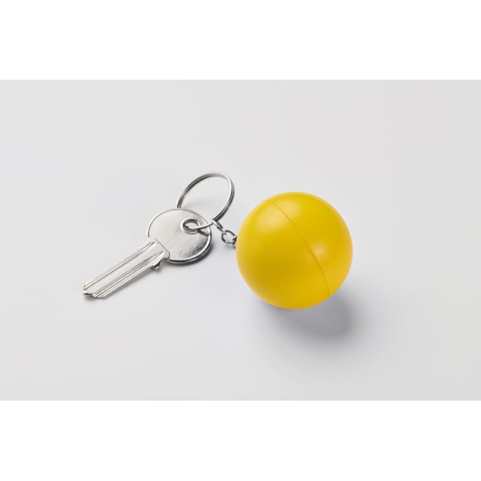 Schlüsselring mit Anhänger aus PU in Kugelform.