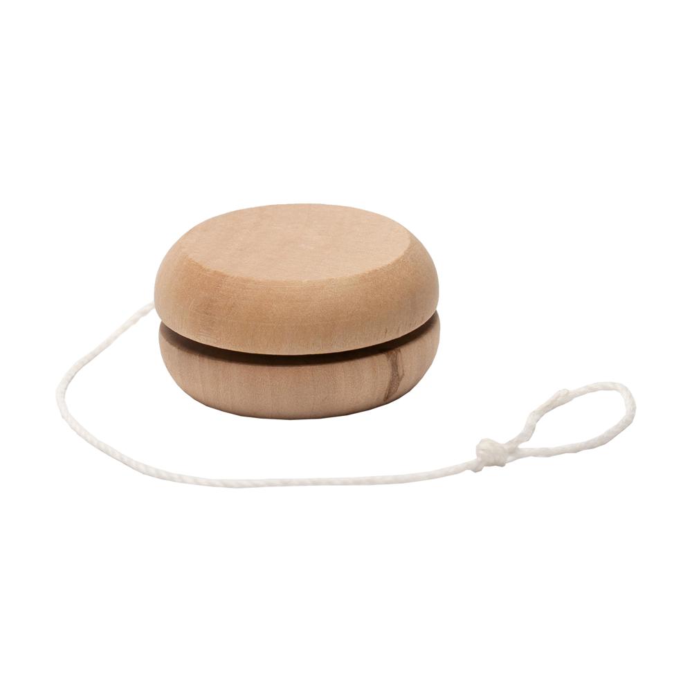 Klassische Form. Gefertigt aus massivem Lotus-Holz. Jo-Jo mit effizienter Werbefläche und Baumwollkordel.