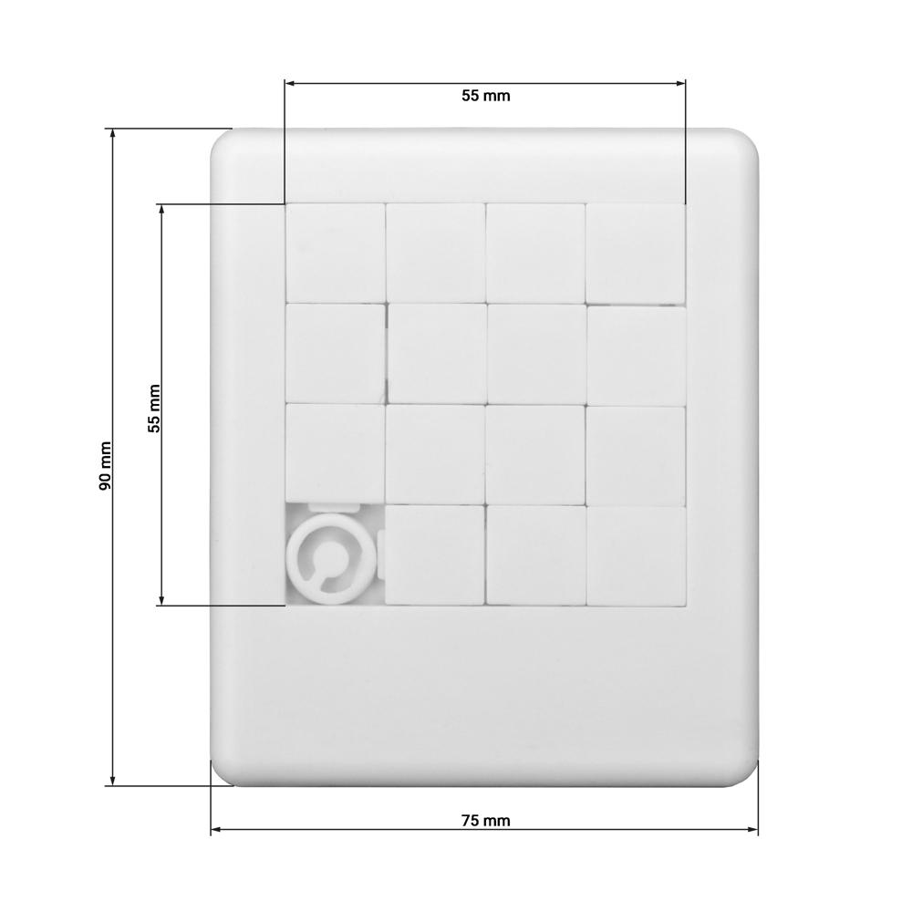 Kniffliges Schiebespiel mit 15 beweglichen Teilen und 1 Stopper. Große und wirkungsvolle Werbefläche.