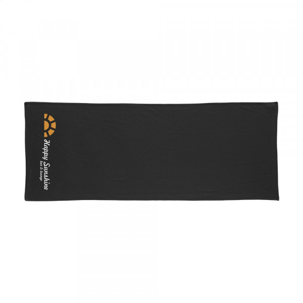 Spezielles Kühlhandtuch aus 100 % Polyester. Nach dem Eintauchen in kaltes Wasser kann dieses Handtuch bei sportlichen Aktivitäten oder Sonnenbrand kühlen. Ideales Format, um es zur Kühlung im Nacken zu tragen. Die Vorderseite des Handtuchs ist in Netzstruktur, die Rückseite ist glatt und hat einen dunkleren Farbton als die Vorderseite.