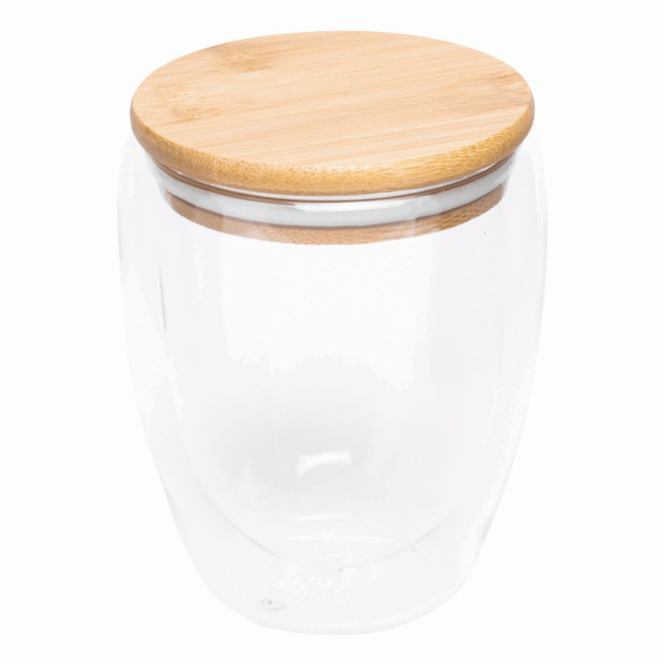 Glas BAMBOO ART M, doppelwandig: Bambusdeckel mit Silikon-Dichtring, transparent, temperaturbeständig, Füllmenge ca. 350 ml, in Box