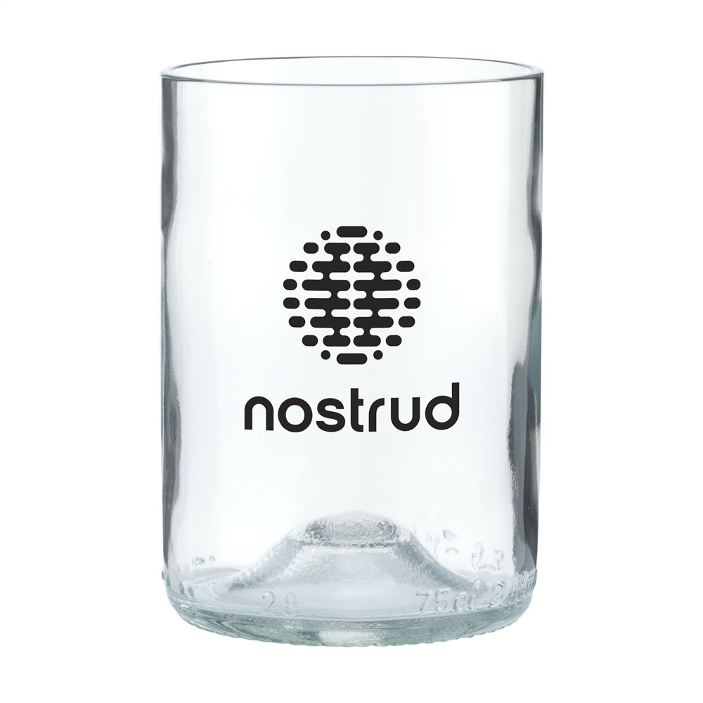 Ein Design Trinkglas hergestellt aus einer recycelten Weinflasche. Ein einzigartiges Glas der Marke Rebottled®, in dem man die Original-Weinflasche sofort erkennt. Das Glas liegt gut in der Hand und hat eine glatte Oberfläche. Von hoher Qualität und geeignet für Wasser, Softdrinks oder Cocktails. Spülmaschinengeeignet bis 60°C. Um den Aufdruck zu erhalten, wird Waschen von Hand empfohlen. Pro Stück in einer originellen Geschenkbox aus recyceltem FSC-zertifiziertem Karton geliefert. Niederländisches Design. Made in Holland. Fassungsvermögen ca. 400 ml. Aufdruck nur in schwarz oder weiß möglich. Rebottled® ist eine Marke, die leere Weinflaschen zu 100% kreisförmige Designobjekte upcycelt. Verpackt pro Stück.