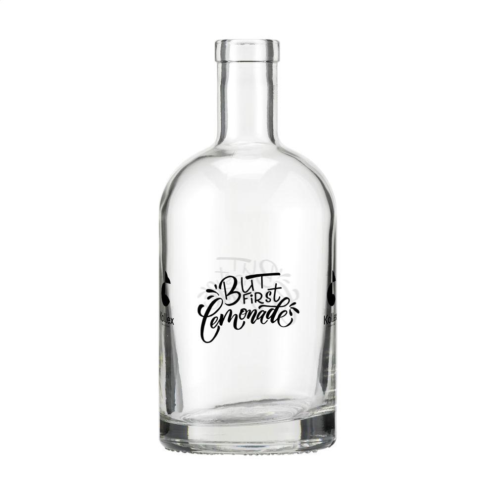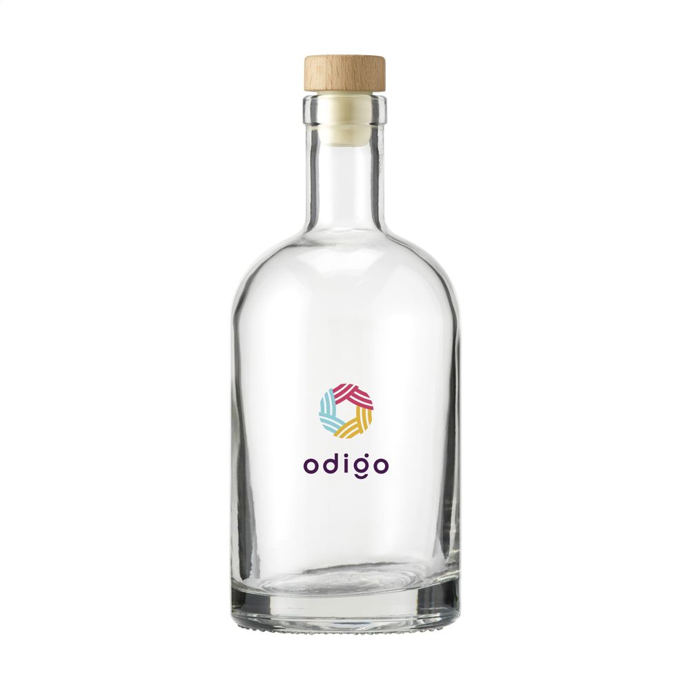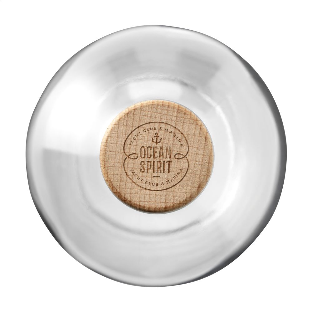 Stilvolle Wasserflasche aus Glas mit Holzkappe, die mit einem Kunststoffkorken und einem stabilen Boden ausgestattet ist. Das zeitlose Design macht diese Flasche ideal als Tischflasche und besonders geeignet für den Einsatz in der Gastronomie. Die Flasche ist spülmaschinengeeignet, der Verschluss mit Korken is nicht spülmaschinengeeignet. Um den Aufdruck zu erhalten, wird Handwäsche empfohlen. Fassungsvermögen 700 ml. Hergestellt in Europa.