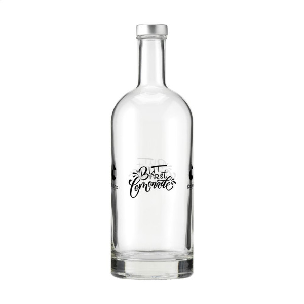 Stilvolle Glaswasserflasche mit Schraubverschluss und stabilem Boden. Das zeitlose Design macht diese Flasche ideal als Tischflasche und besonders geeignet für den Einsatz in der Gastronomie. Die Flasche ist spülmaschinengeeignet, der Verschluss nicht. Um den Aufdruck zu erhalten, wird Handwäsche empfohlen. Fassungsvermögen 1L.