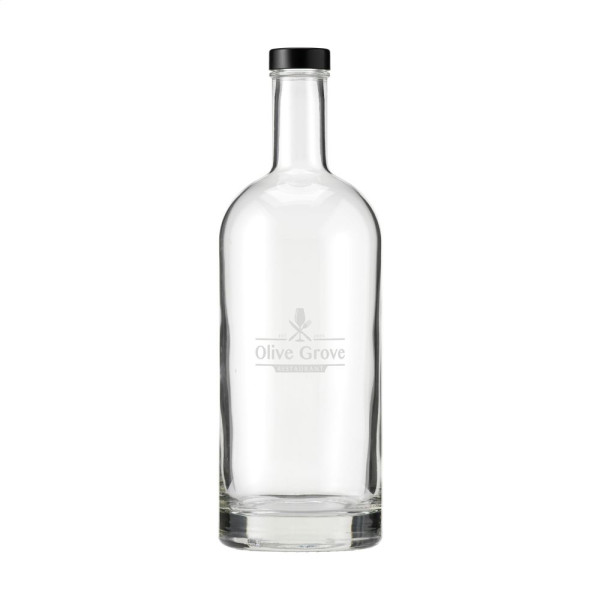 Stilvolle Glaswasserflasche mit Schraubverschluss und stabilem Boden. Das zeitlose Design macht diese Flasche ideal als Tischflasche und besonders geeignet für den Einsatz in der Gastronomie. Die Flasche ist spülmaschinengeeignet, der Verschluss nicht. Um den Aufdruck zu erhalten, wird Handwäsche empfohlen. Fassungsvermögen 1L.