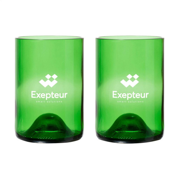Set von Rebottled® Design-Trinkgläsern aus upcycelten Weinflaschen. Einzigartige Gläser, in denen man die ursprüngliche Weinflasche sofort wiedererkennt. Die Gläser liegen angenehm in der Hand und haben eine glatte Oberfläche. Von hoher Qualität und geeignet für Wasser, Softdrinks oder Cocktails. Spülmaschinengeeignet bis 60°C. Um den Aufdruck zu erhalten, wird Waschen von Hand empfohlen. Pro Stück in einer originellen Geschenkbox aus recyceltem FSC®-zertifiziertem Karton geliefert. Niederländisches Design. Made in Holland. Fassungsvermögen ca. 400 ml pro Glas. Aufdruck nur in schwarz oder weiß möglich. Rebottled® ist eine Marke, die leere Weinflaschen zu 100% kreisförmige Designobjekte upcycelt. Verpackt pro Set.