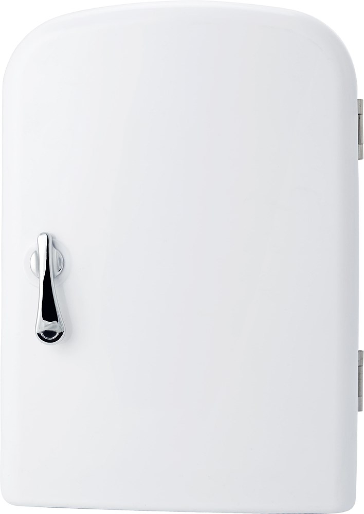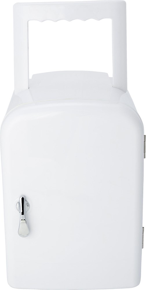 Mini-Kühlschrank aus Kunststoff, passend für 6 x 0,33 l Dosen, Tragegriff (klappbar), 12V Stecker für Zigarettenanzünder, 220V für Netzstecker.