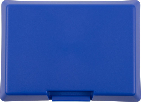Brotdose 'Bernd' aus Kunststoff mit abgeflachten Seiten, nicht spülmaschinengeeignet.