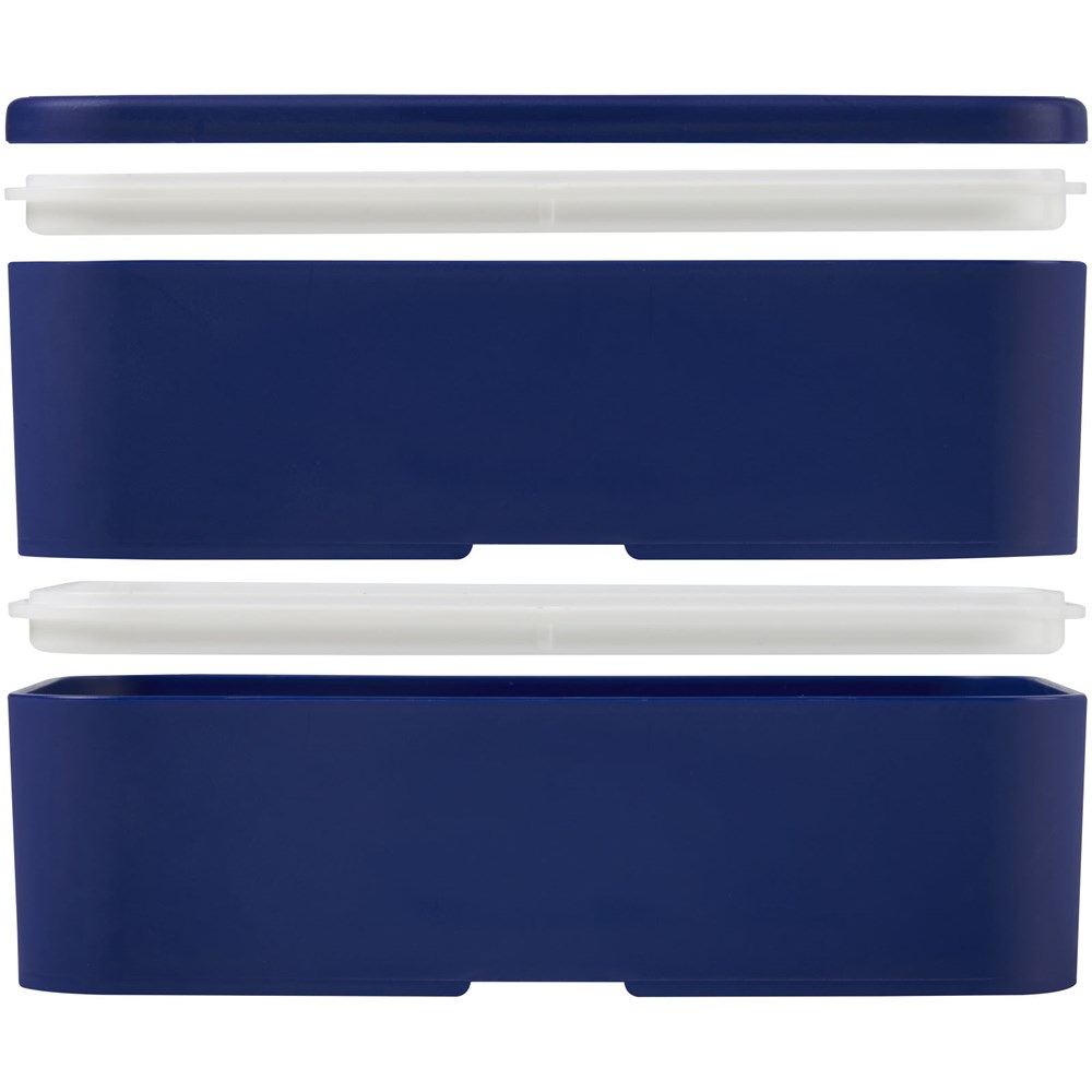 Diese MIYO Doppel-Lunchbox mit zwei 700 ml Behältern bietet viel Platz für Sandwiches, Obst, Salat und vieles mehr. Sie wird von einem Band aus recyceltem PET gehalten. Andere Farbkombinationen und Zubehör wie z. B. ein Göffel oder ein Innenfach sind ebenfalls erhältlich. Bitte kontaktieren Sie uns für weitere Informationen. Mikrowellengeeignet, spülmaschinenfest, BPA-frei und vollständig recycelbar. Hergestellt in UK und verpackt in einem recycelten PE-Kunststoffbeutel. Sie können Ihr MIYO ganz individuell mit Einzelnamen auf dem Deckel gestalten. Kontaktieren Sie uns bitte für weitere Informationen.