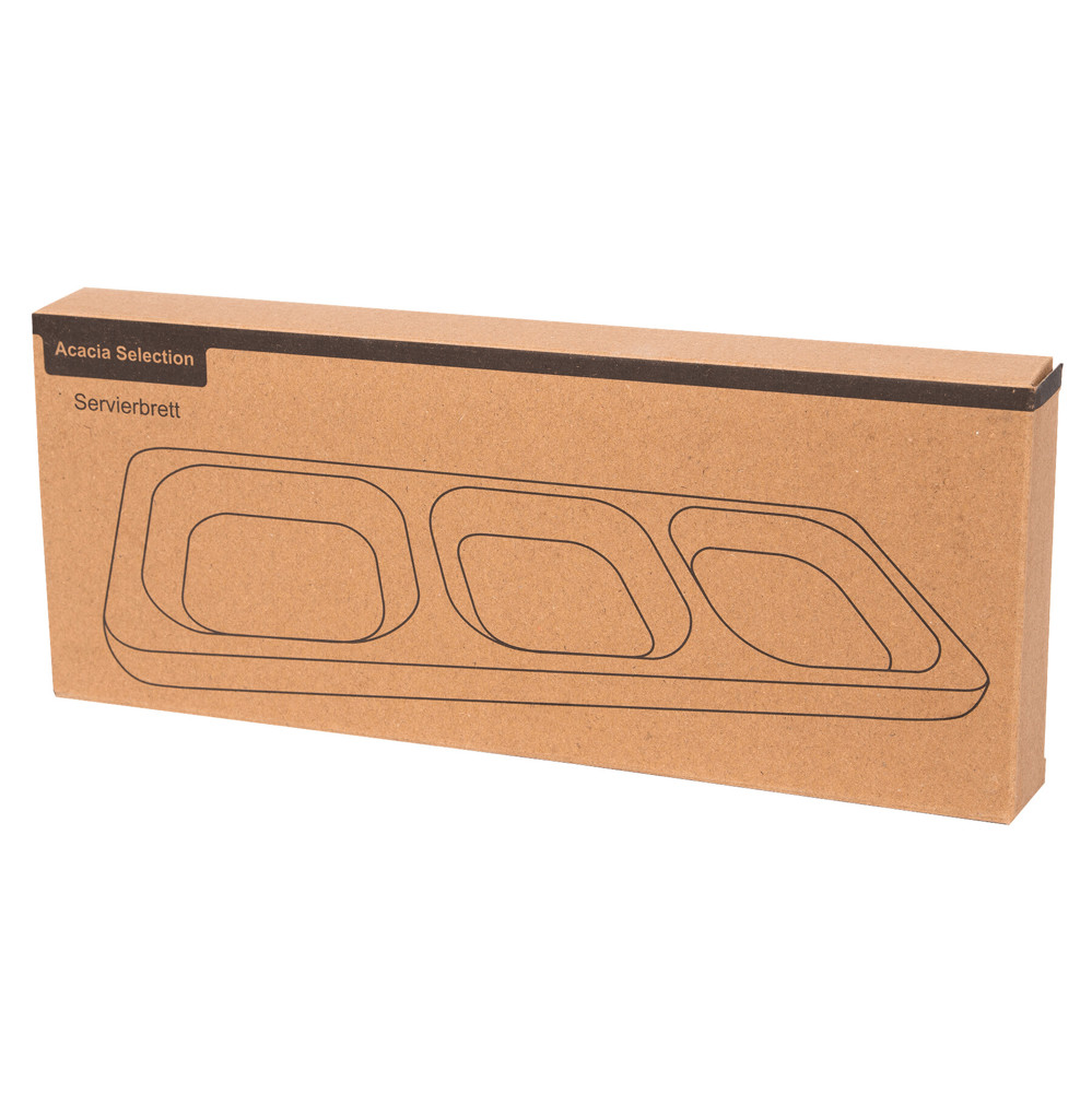 Servierbrett ACACIA SELECTION: aus geöltem Akazienholz, mit 3 integrierten Vertiefungen für z. B. Nüsse, Süßigkeiten etc., in Box
