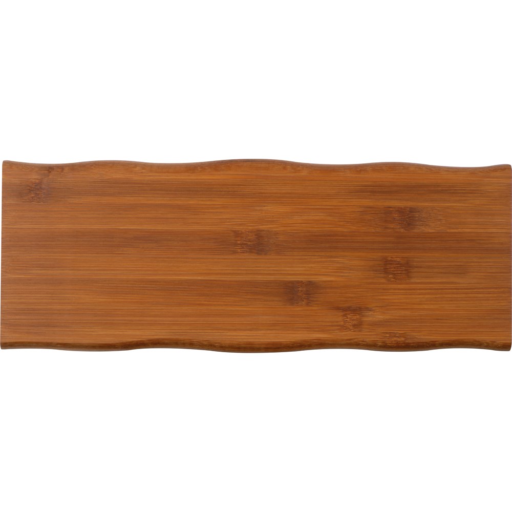 Großes Schneidebrett aus Bambus mit gewellten Seiten. Ideal geeignet für das Servieren von Snacks und die Zubereitung von Speisen. Ihre Werbung wird auf das Brett graviert.