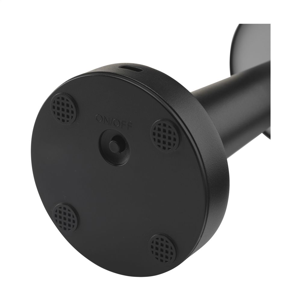 iederaufladbare Tischlampe von der Marke Wooosh. Die Lampe hat ein modernes Design und ist aus Metall und recyceltem ABS hergestellt. Diese stilvolle Lampe strahlt Charakter aus und passt mühelos in jeden Raum, drinnen oder draußen. Mit einer sanften Berührung des Touch-Schalters auf der Oberseite kann man ganz einfach zwischen stimmungsvollem, blauem oder weißem Licht wechseln. Die Helligkeit lässt sich mit einer längeren Berührung einstellen. Nach einer Ladezeit von 2 Stunden genießen Sie bis zu 12 Stunden lang die gewünschte Beleuchtung. Eingang: 5V/1A. Inklusive eingebautem 1200-mAh-Akku, einem USB-C-Ladekabel und Gebrauchsanweisung. RCS-zertifiziert. Gesamtes recyceltes Material: 11%. Pro Stück in einer luxuriösen Wooosh-Geschenkbox.