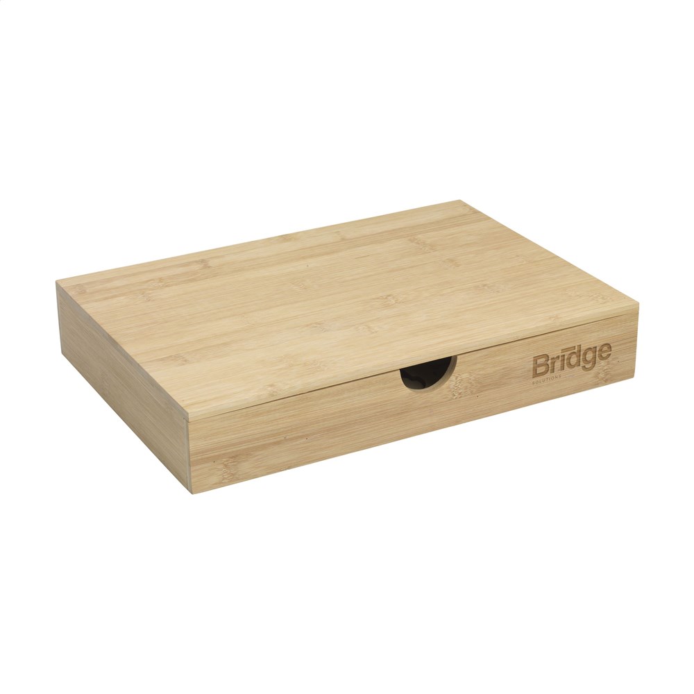 Eine Schublade zur Aufbewahrung von Kaffeekapseln und Spiel in einem. Ein Produkt der Marke Rackpack. Hergestellt aus FSC 100% zertifiziertem Bambus und FSC 100% zertifizierter Kiefer. Wenn Sie die Schublade vollständig ausziehen, können zwei Personen ein strategisches Spiel spielen, bei dem das Ziel ist, als Erster vier Scheiben in einer Reihe zu platzieren. Verwenden Sie die mitgelieferten Discs (42 Stück) oder Ihre eigenen Kaffeekapseln. Ideal, um eine funktionelle und spielerische Kaffee-Ecke in Ihrer Küche zu schaffen. Bambus ist ein natürliches Material. Deshalb kann die Farbe je nach Produkt variieren. Verpackt pro Stück.