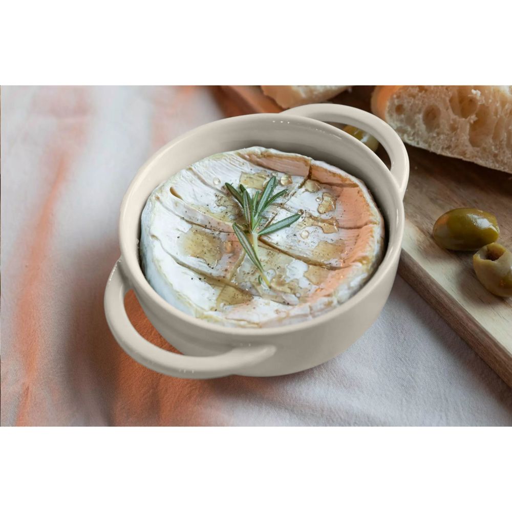 Gusta Mini-Fondue-Set aus hitzebeständiger Keramik. Eine elegante und perfekte Größe für ein kleines Käsefondue oder überbackenen Käse. Ideal zum Schmelzen von Camembert, Brie oder einem cremigen Käsedip – direkt aus dem Ofen auf den Tisch. Geeignet für Backofen (bis 230 °C), Mikrowelle und Spülmaschine. Um den Aufdruck zu erhalten, wird Handwäsche empfohlen. Ideal für den ultimativen Käseliebhaber, vom zwanglosen Umtrunk bis zum luxuriösen Snackmoment. Inklusive 2 Fonduegabeln. Fassungsvermögen Fonduetopf 300 ml.