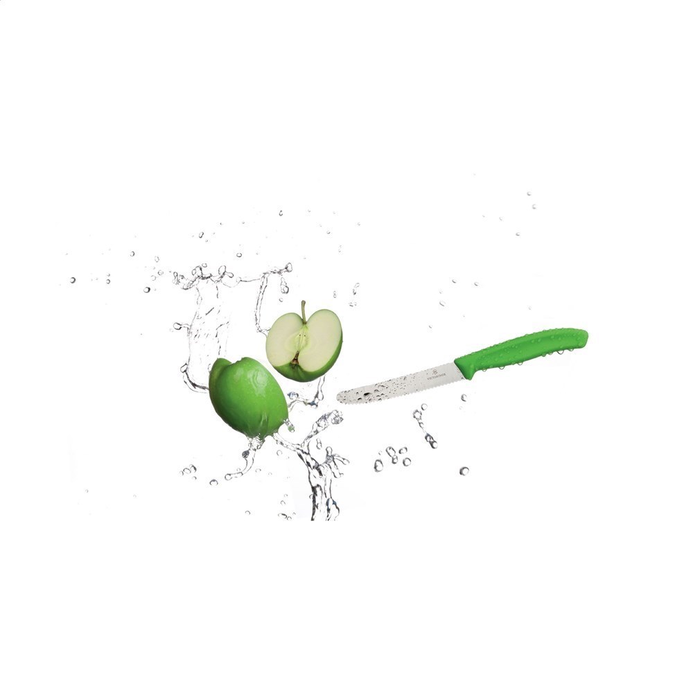 Hochqualitatives Tischmesser der Marke Victorinox Swiss Classic. Die qualitative, hochwertige Stahlklinge (11 cm) ist gekerbt und hat eine runde Kante. Mit Kunststoffgriff. Durch die ergonomische Form liegt dieses Messer sehr schön in der Hand. Zur Verwendung beim Essen einer Mahlzeit oder bei einer Menge Aufgaben in der Küche. Spülmaschinengeeignet. Exklusive Victorinox-Schutzüberzug aus Kunststoff. Dies ist separat erhältlich (nr. 0692).