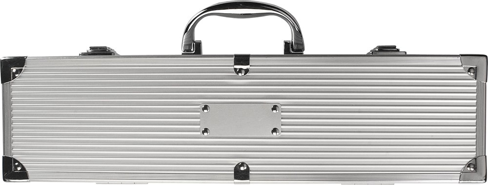 Grillset aus Metall im Aluminiumkoffer, 3-tlg. bestehend aus Zange, Wender und Fleischgabel. mehr