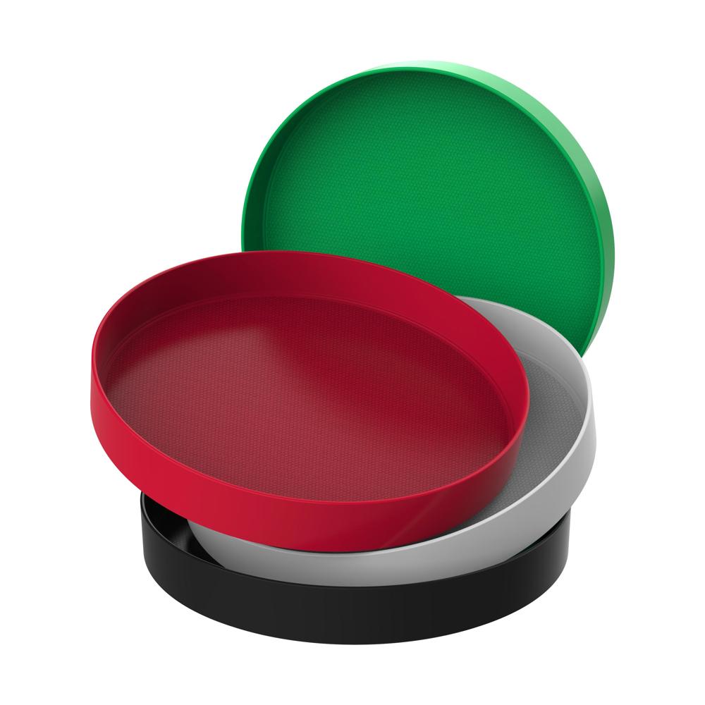 Großes, rundes Tablett aus Kunststoff mit besonders guter Reinigungseigenschaft und außerordentlicher Stabilität. Top-Qualität "Made in Germany". Mit rutschhemmender, spezieller Wabenstruktur und/oder IMould-Veredelung. Auch am hohen Rand veredelbar.
