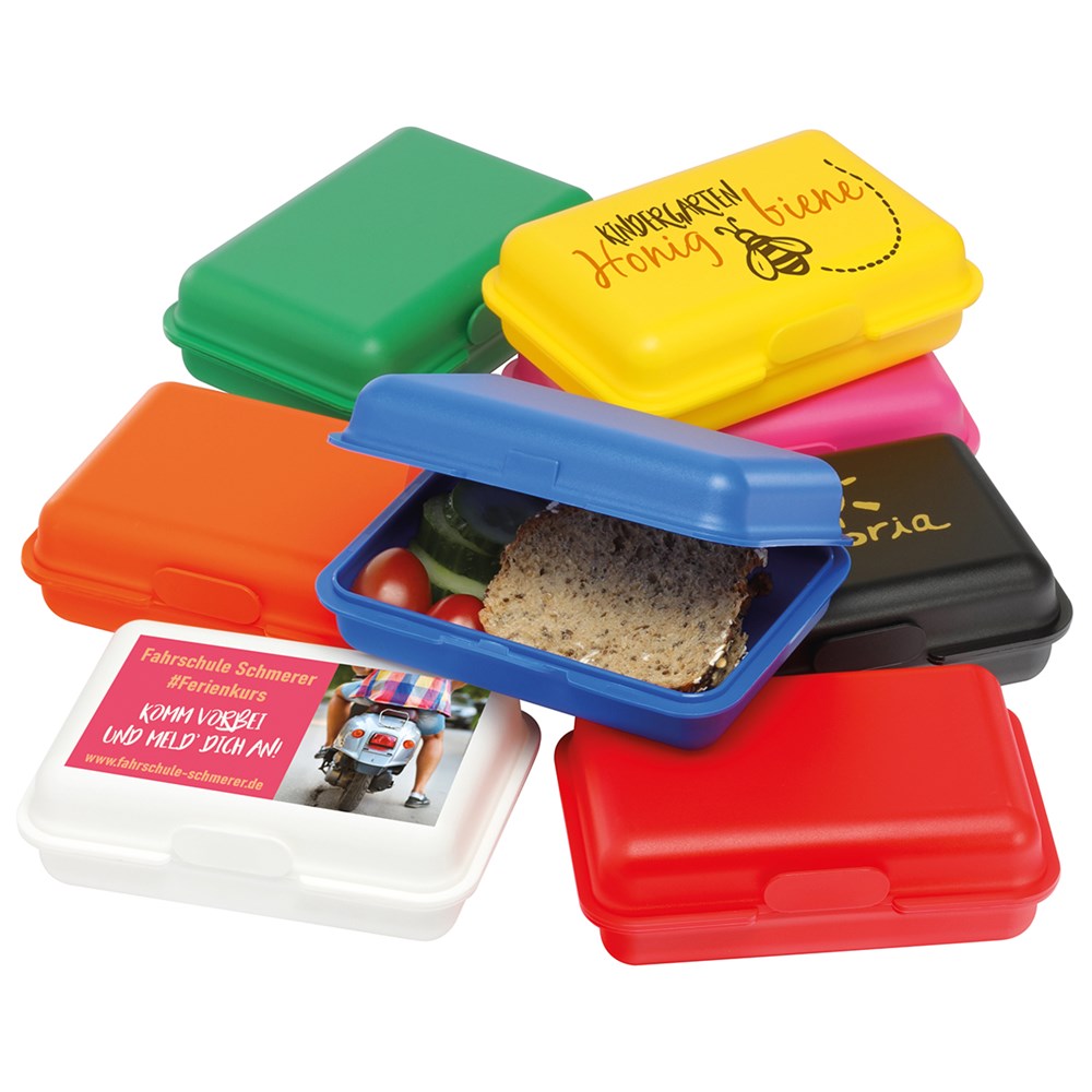 für den kleinen Imbiss, langlebige Mehrwegdose, BPA frei. Druck ist nicht spülmaschinenfest.