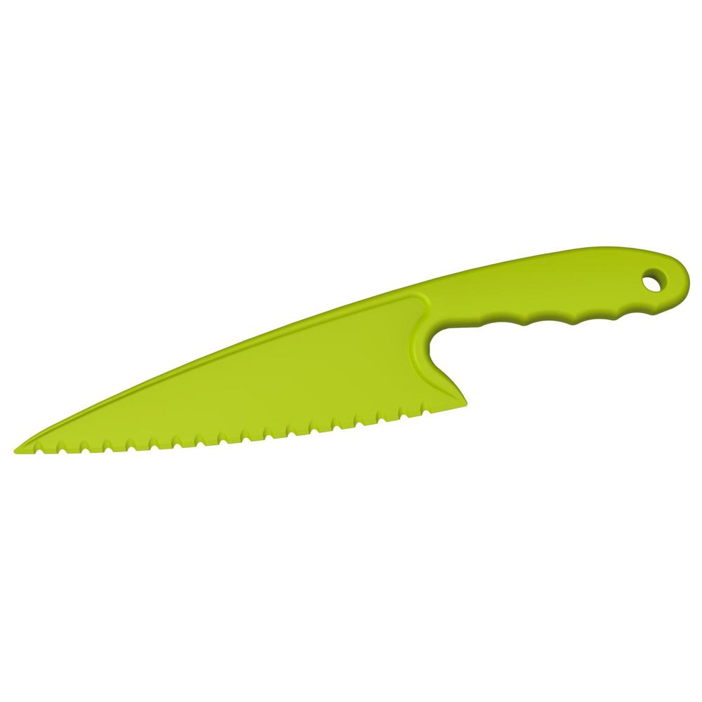 Das Schnittige unter den Kunststoffmessern. Tolles Küchenaccessoire aus einem Guss mit gezackter Schneide und ergonomischem Griff. Komplett aus Kunststoff gefertigt und mit Loch am Ende des Griffs.