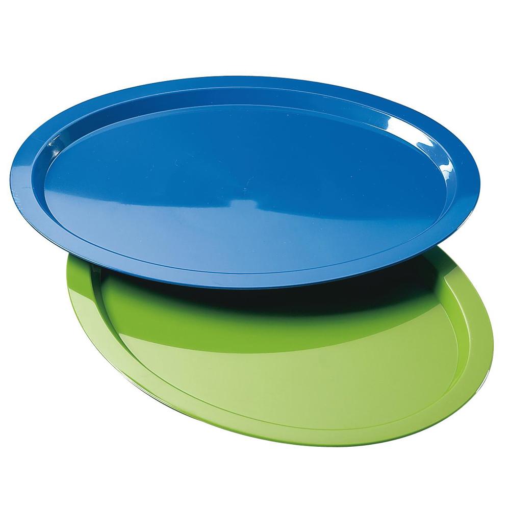 Ovales Tablett aus stabilem Kunststoff mit großer Werbefläche und niedrigem Rand zur besseren... mehr