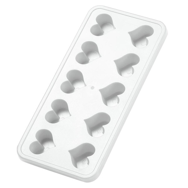 Flexible Form für 10 Eiswürfel in Herzform. Durch das weiche Material sind die fertigen Eiswürfel besonders leicht herauszunehmen.
