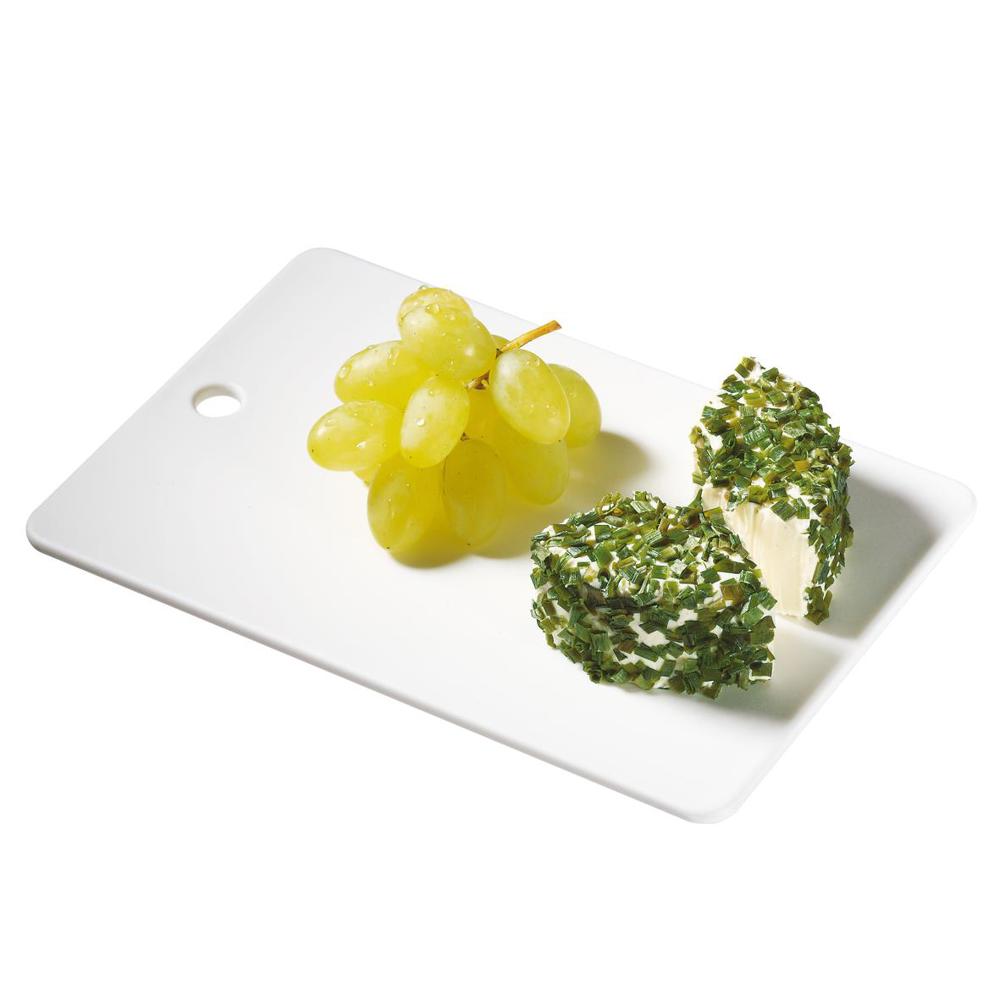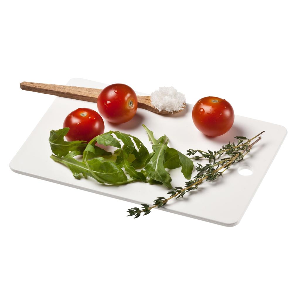 Schneidbrett in handlicher Größe mit Loch zum Aufhängen. Für die kleine Mahlzeit zwischendurch. IMould-Veredelung möglich.