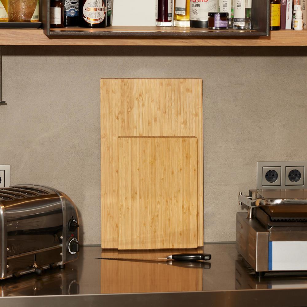 Premium Schneidbrett aus natürlich antibakteriellem Bambusholz. Professionell, langlebig und widerstandsfähig. Zudem umweltfreundlich, da Bambus zu den schnell nachwachsenden Rohstoffen zählt. Ein Highlight ist das clevere Design mit angeschrägten Kanten zum leichten Anheben des Bretts vom Tisch. Perfekt geeignet für Profi- und Hobbyköche.