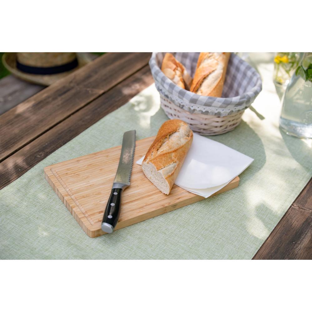 Hochwertiges Schneidbrett aus Bambusholz - perfekt für die nächste Brotzeit. 15 mm stark, mit abgerundeten Ecken und Saftrille am Rand gegen das Herunterfließen von Flüssigkeiten. Bambusholz ist nicht nur messerschonend und widerstandsfähig, sondern bietet auch unter ökologischen Aspekten klare Vorteile. Es ist ein schnell nachwachsender Rohstoff und liegt daher absolut im Trend. Wie bei allen Holzbrettern wird die Reinigung per Hand empfohlen.