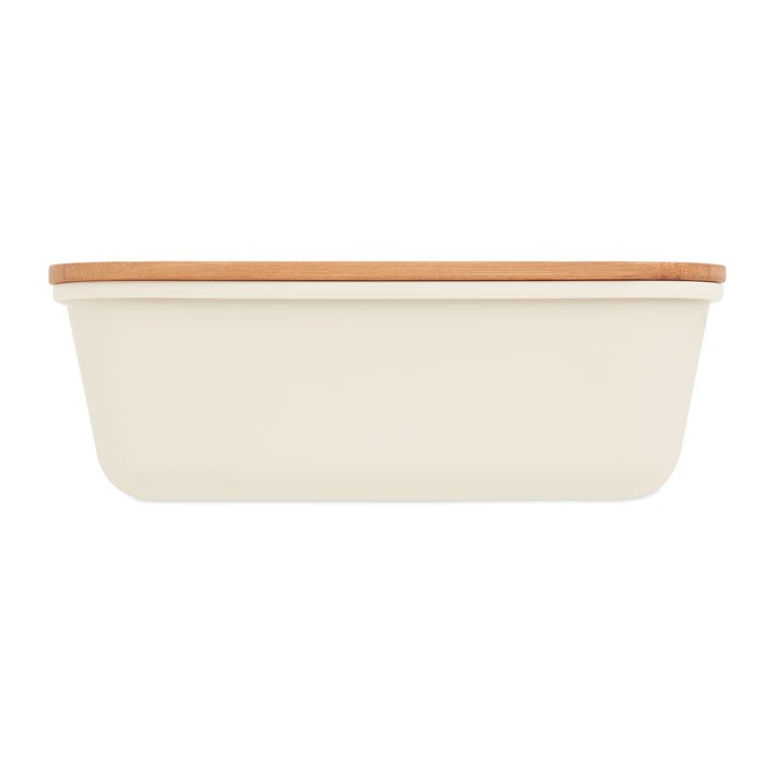 Lunch- oder Sandwichbox aus PP mit Deckel aus Bambus. Bambus ist ein natürliches Produkt, es kann daher zu leichten Abweichungen in Farbe, Dekor und Maßen kommen.