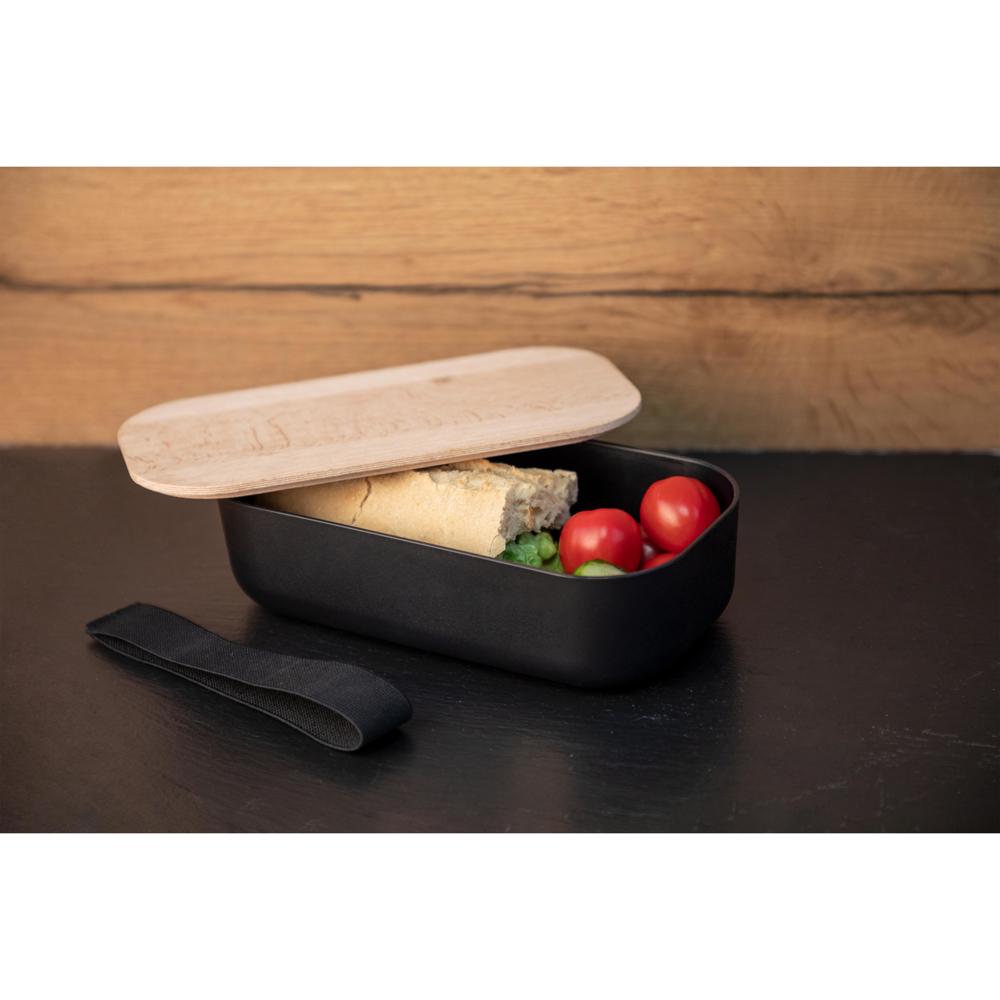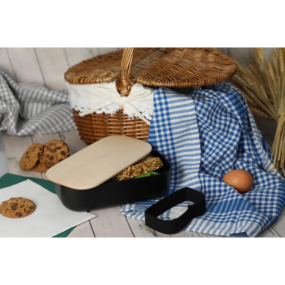Ein wahrer Eyecatcher im Pausenraum. Die schicke Vorratsdose besteht aus drei Komponenten: Einer Schale aus lebensmittelechtem Bio-Kunststoff, einem Deckel aus Buchenholz und einem Elastikband, welches die Dose sicher zusammen hält. Da das Material des Deckels naturbelassenes Buchenholz ist, kann es zu Schwankungen bei der Farbe und Maserung kommen.