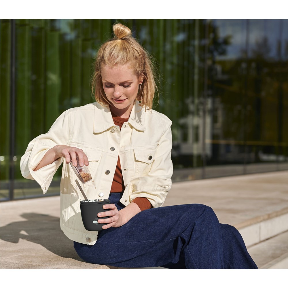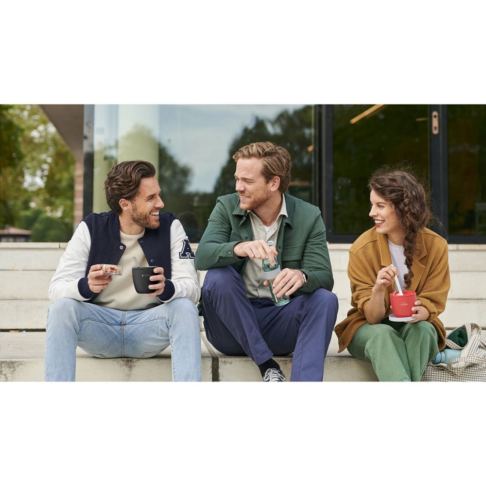 Mit diesem 2-teiligen Lunchset der Marke Mepal haben Sie immer ein abwechslungsreiches Mittagessen dabei: • Kunststoff-Lunchbox Ellipse 700 ml. Mit separaten Behältern (500 ml + 200 ml) und auslaufsicherem Verschluss. Ideal für jeden Snack wie Suppe, Nudeln oder Joghurt. • Wasserflasche Vita (700 ml) aus Tritan und PP. Mit 2 Öffnungen: einfaches trinken, nachfüllen und reinigen. Öffnen und Schließen mit einer kurzen Drehung. Silikon-Trageschlaufe. Auslaufsicher. Geeignet für kohlensäurehaltige Getränke, in diesem Fall die Flasche nicht ganz bis zum Rand füllen. Für beide Produkte gilt: 100% recycelbar. Spülmaschinengeeignet. Um den Aufdruck zu erhalten, wird Waschen von Hand empfohlen. Hergestellt in den Niederlanden. Verpackt pro Set.