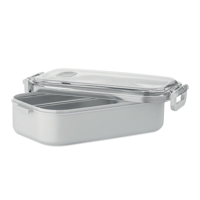 Lunchbox aus PP mit Innenauskleidung aus recyceltem Edelstahl. Luftdichter Deckel aus AS hält Speisen während des Transports frisch und sicher. Füllmenge: 650/750 ml mit/ohne Tablett.