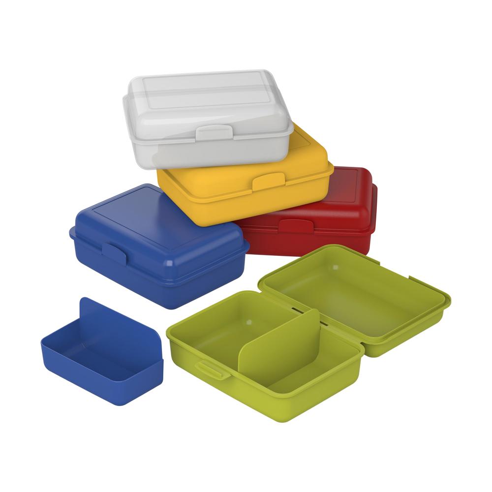 Die perfekte Pausenbox! Mit Klickverschluss und herausnehmbarer Trennschale – für unterschiedlichste Lebensmittel geeignet und in vielen verschiedenen Farben lieferbar. IMould-Veredelung möglich.