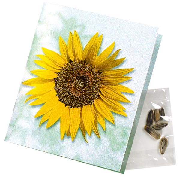 Das Klappkärtchen ist ideal als Briefpostbeigabe oder zum Überreichen. Die Standardmotive bieten eine volle Innenfläche für Ihre Werbebotschaft. Der Druck in das Standardmotiv oder eine komplett eigene Gestaltung innen und außen ist ab 250 Stück möglich. Samen: Zwergsonnenblume