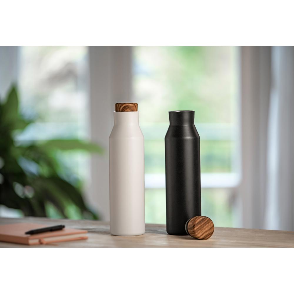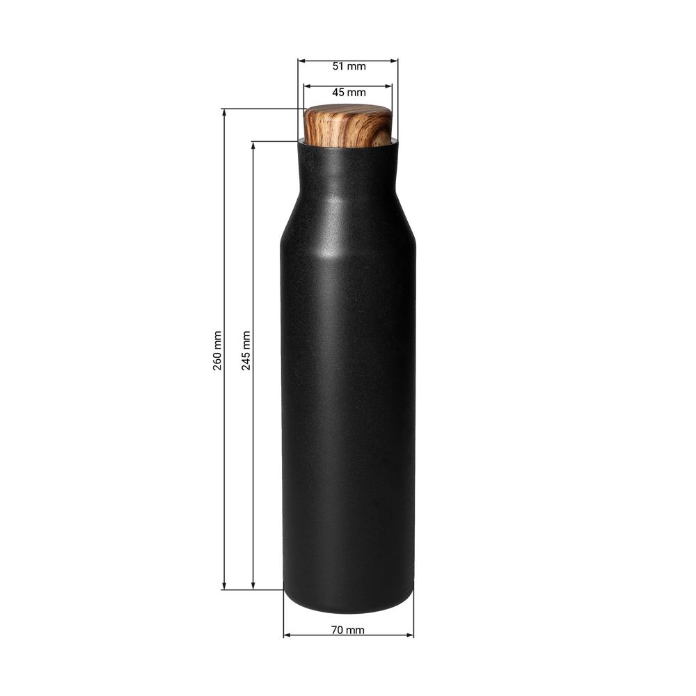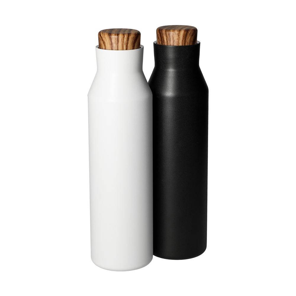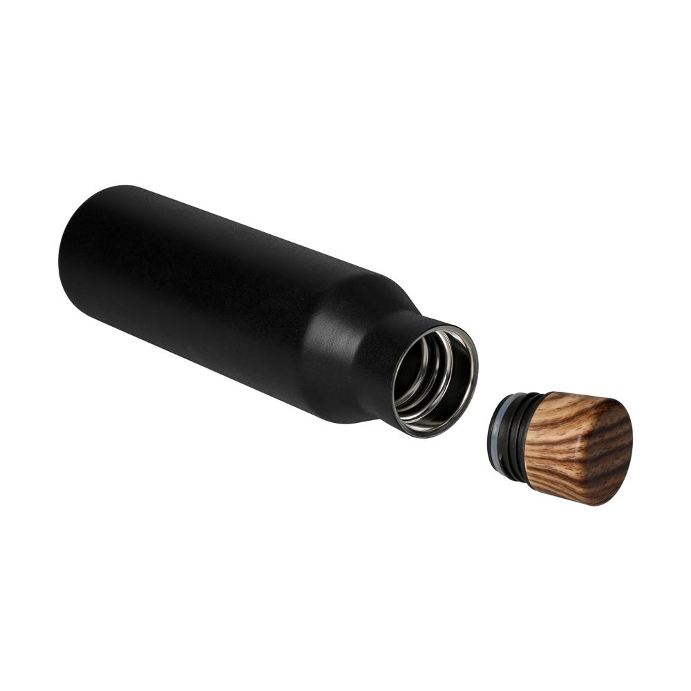 Vakuumierte Trinkflasche in trendigem Design. Die doppelwandige Isolierung sorgt dafür, dass die Temperatur des Getränks länger konstant bleibt. Der schicke Schraubverschluss ist auslaufsicher und auch für kohlensäurehaltige Getränke geeignet. Füllmenge: 0,60 Liter.