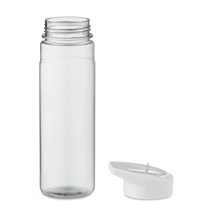 Trinkflasche aus RPET. Klappbares Mundstück aus PP mit Trinkhalm. Füllmenge: 650ml. Nicht für kohlensäurehaltige Getränke geeignet.