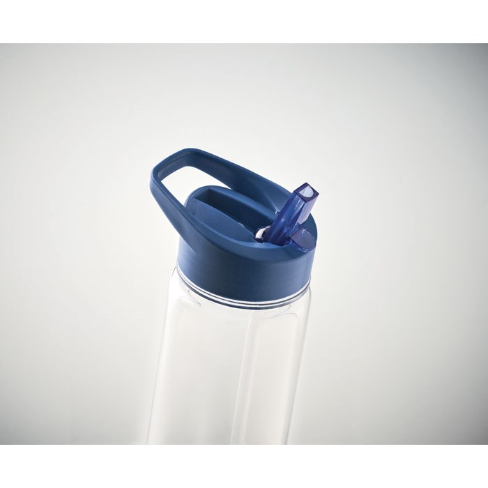 Trinkflasche aus RPET. Klappbares Mundstück aus PP mit Trinkhalm. Füllmenge: 650ml. Nicht für kohlensäurehaltige Getränke geeignet.