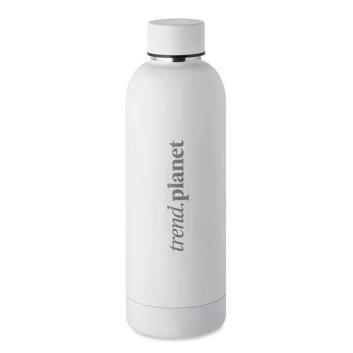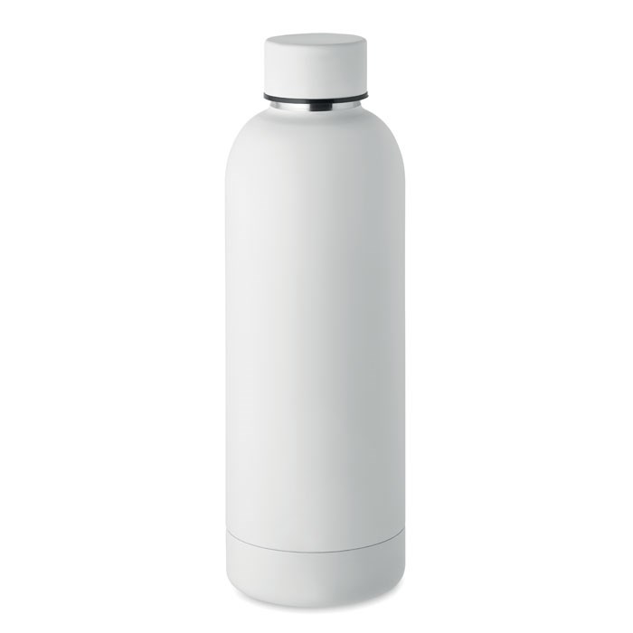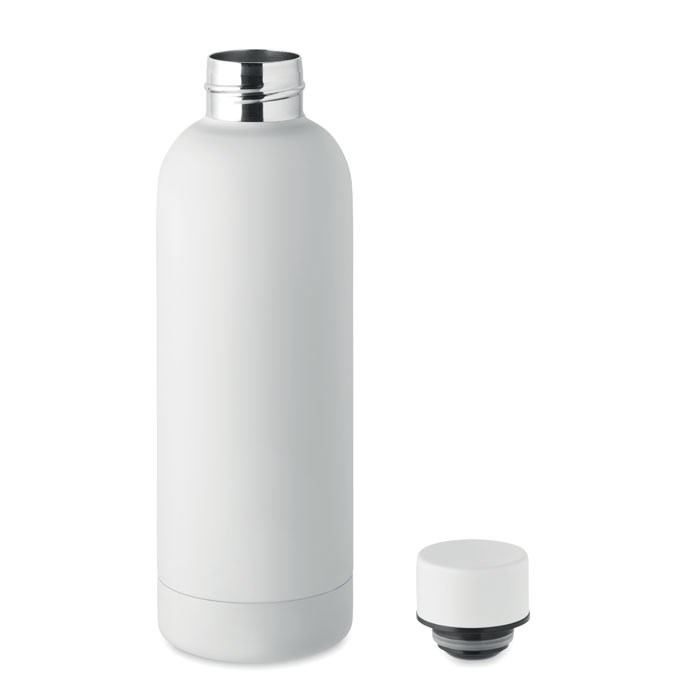 Doppelwandige Isolierflasche aus recyceltem Edelstahl. 90% recycelter Edelstahl und 10% Edelstahl. Füllmenge: 500 ml. Auslaufsicher. Nicht für kohlensäurehaltige Getränke geeignet.