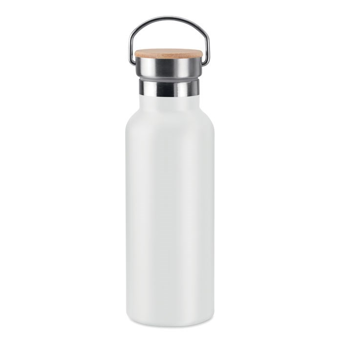 Doppelwandige Isolierflasche aus Edelstahl. Deckel aus Bambus mit Henkel. Füllmenge: 500 ml.... mehr