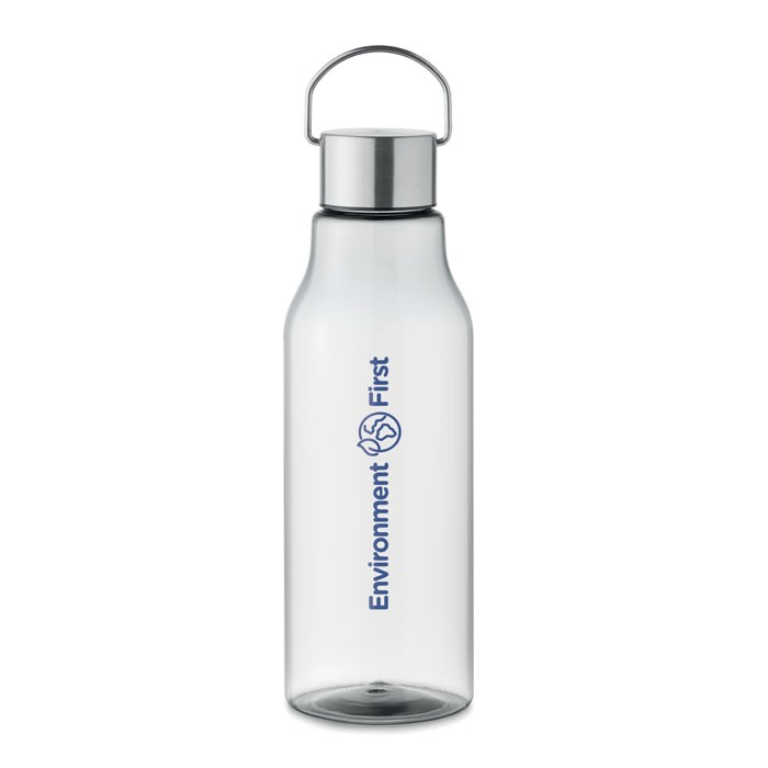 Trinkflasche aus Tritan Renew™. BPA-frei. Verschluss aus Edelstahl mit Henkel. Auslaufsicher. Füllmenge: 800 ml. Dieses Produkt wird aus Material mit bis zu 50% Recyclinganteil hergestellt. ISCC zertifiziert.