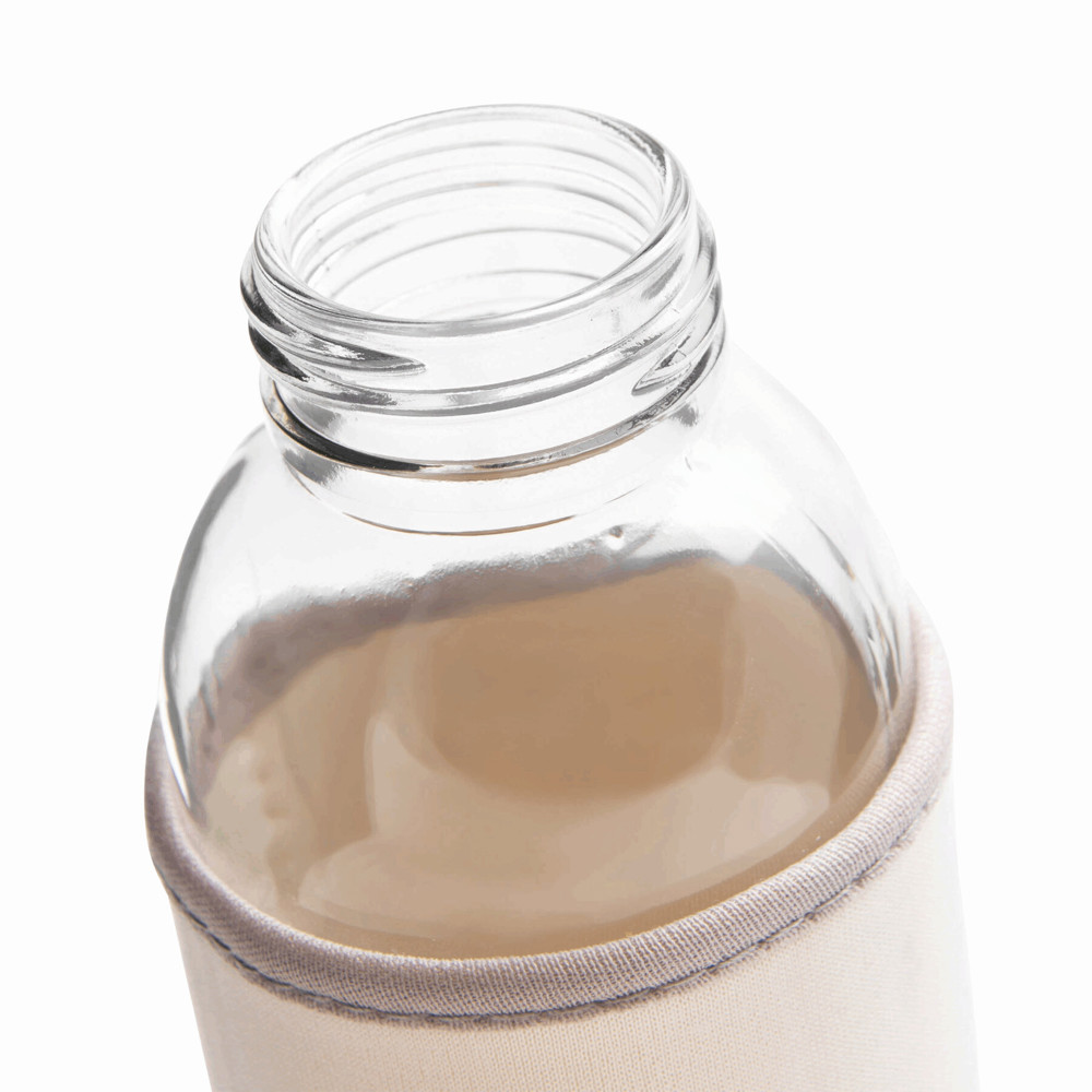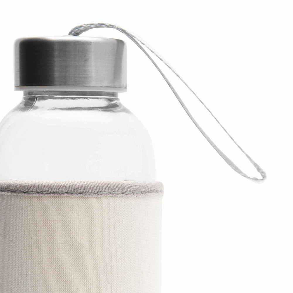 Glas-Trinkflasche TAKE WELL: Edelstahldeckel mit Schraubverschluss, Silikon-Dichtring und Handschlaufe, inkl. farbiger Schutzhülle, Füllmenge ca. 450 ml, in Box