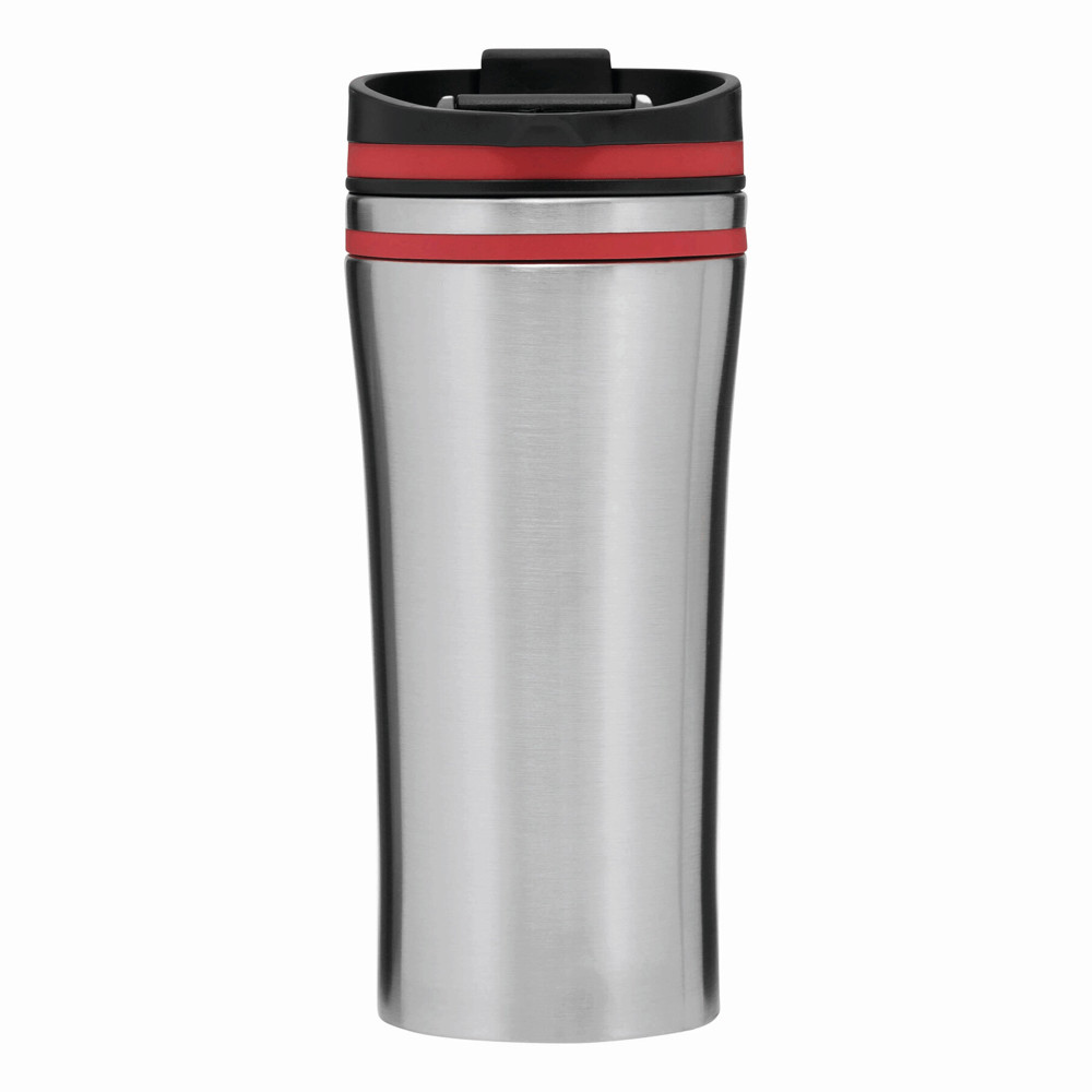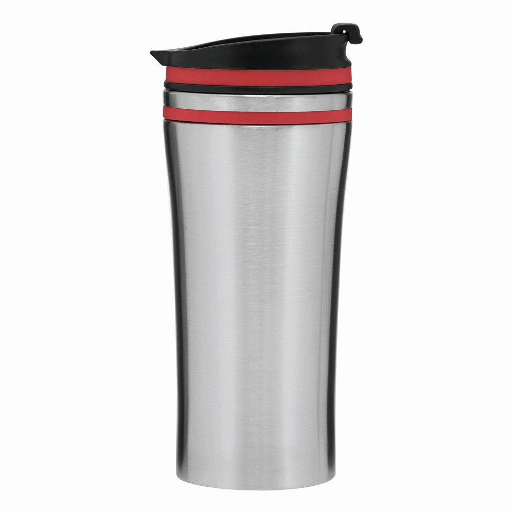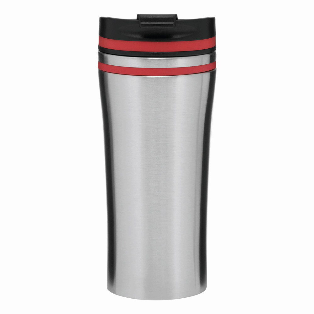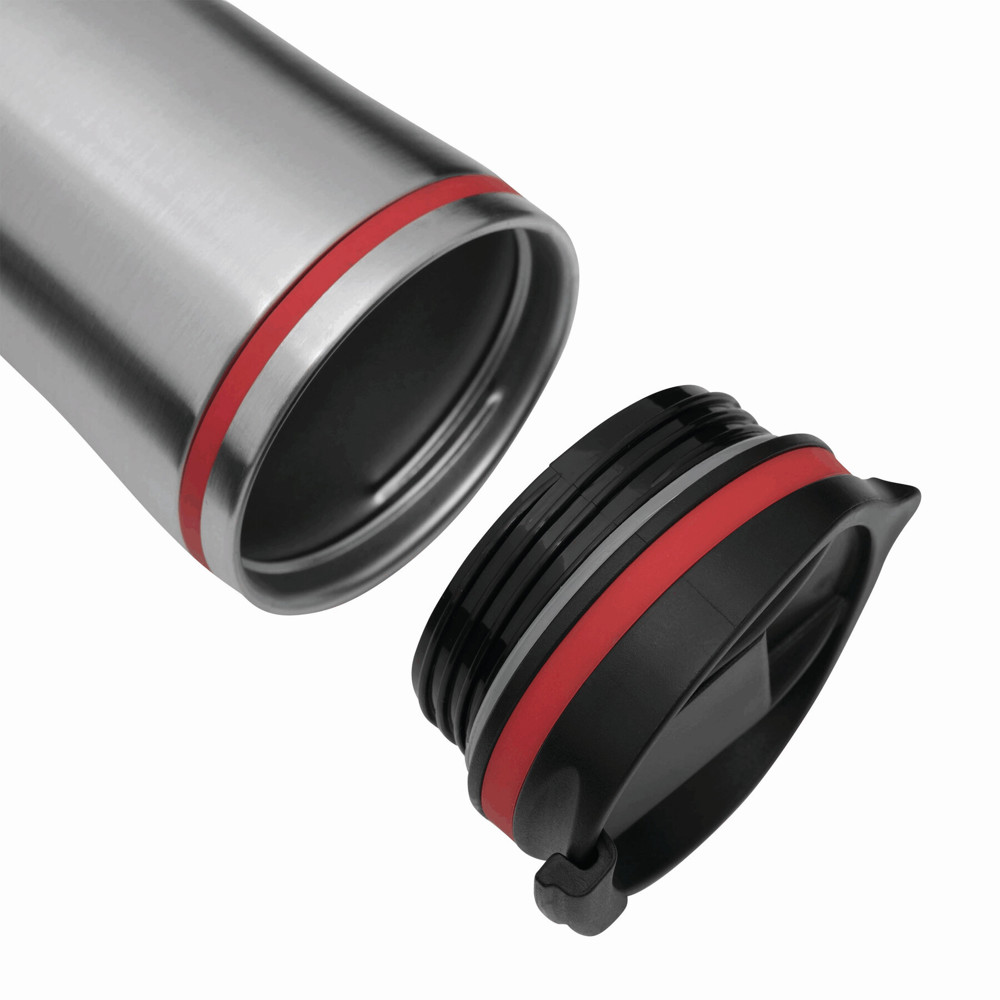Isolierbecher LIBERICA, doppelwandig: innen und außen aus Edelstahl, Deckel mit sicherem Schraubverschluss und integrierter Trinköffnung zum Aufklappen, farbige Applikation, Füllmenge ca. 400 ml