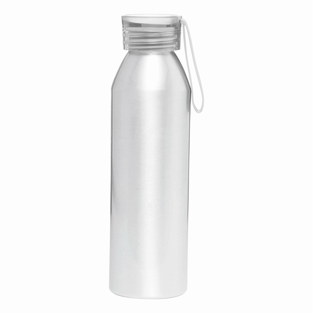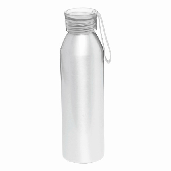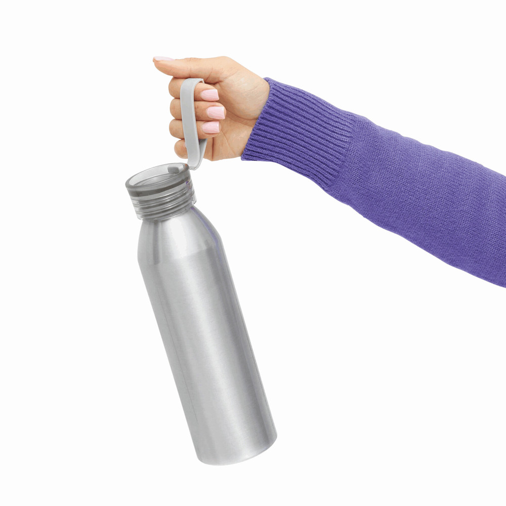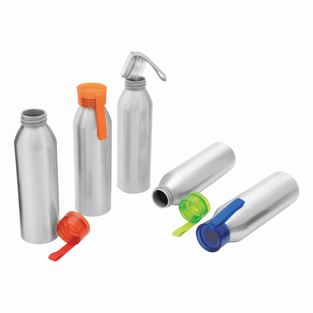 Aluminium Trinkflasche COLOURED: farbiger Kunststoffdeckel mit Schraubverschluss, Silikonschlaufe, Füllmenge ca. 650 ml.