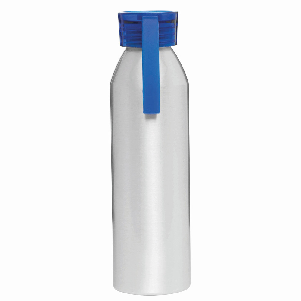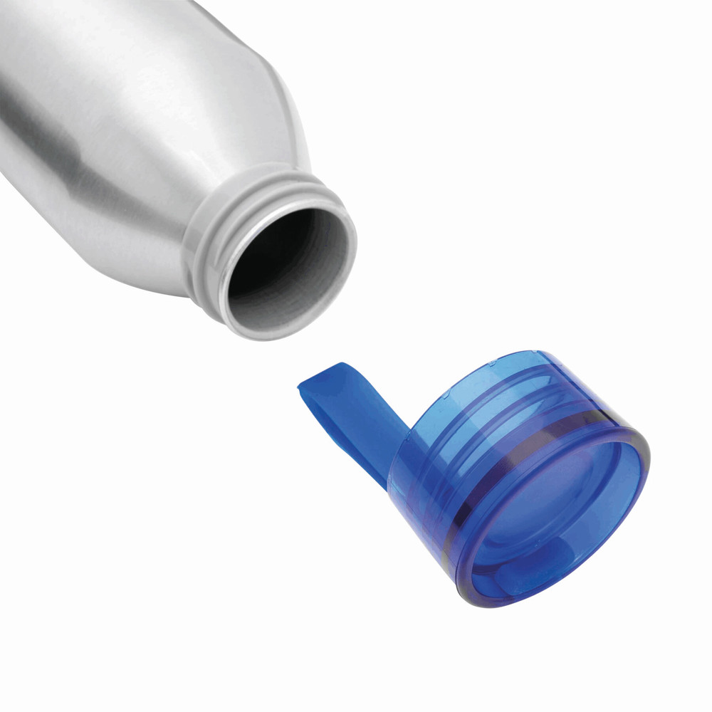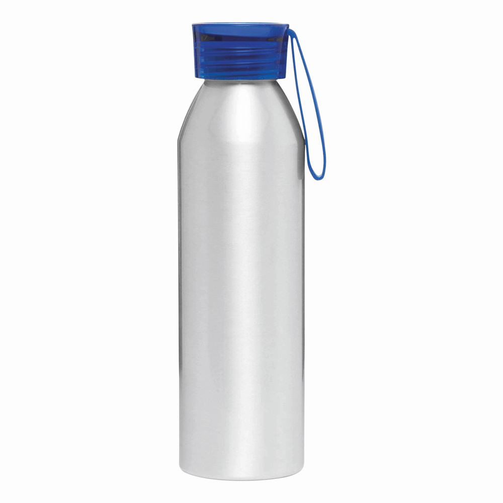 Aluminium Trinkflasche COLOURED: farbiger Kunststoffdeckel mit Schraubverschluss, Silikonschlaufe, Füllmenge ca. 650 ml.
