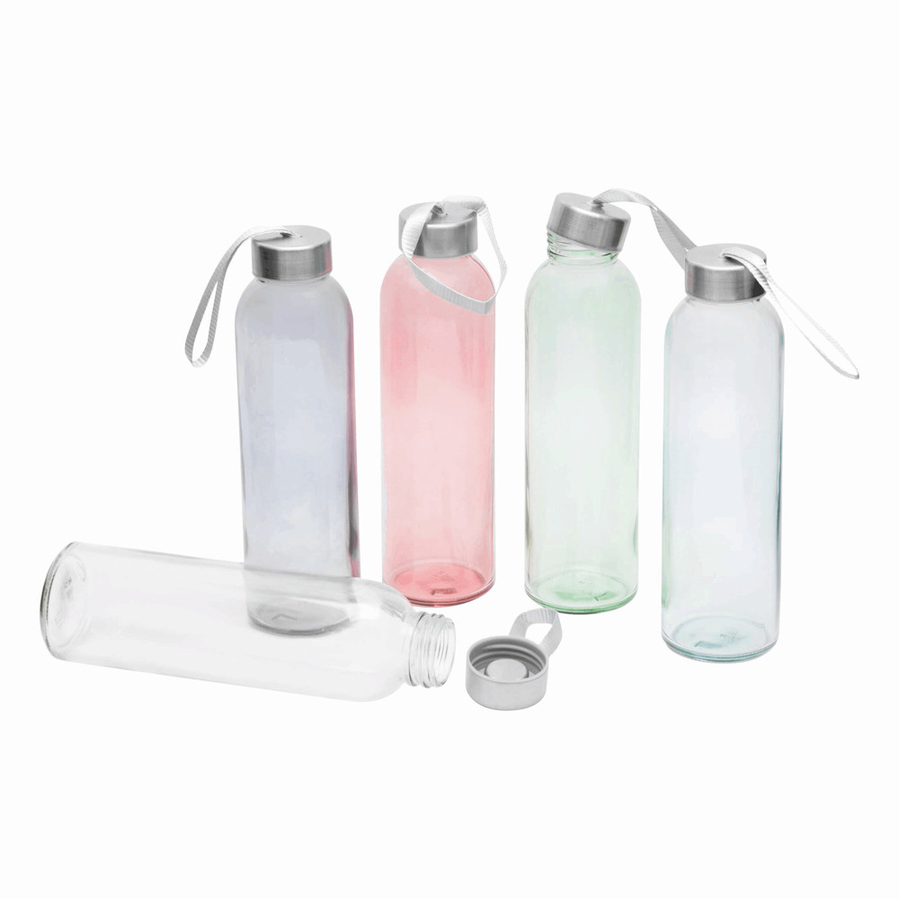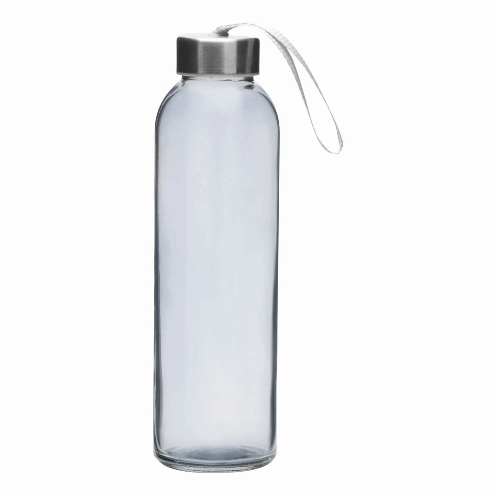 Glas-Trinkflasche TAKE SMART: Edelstahldeckel mit Schraubverschluss, Silikon-Dichtring und Handschlaufe, Füllmenge ca. 500 ml, in Geschenkbox