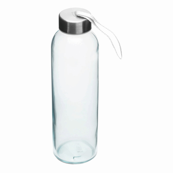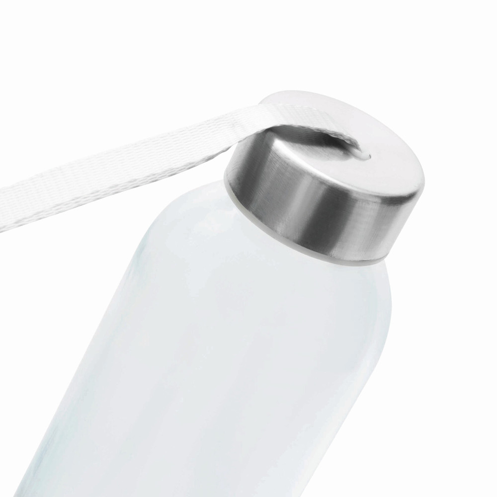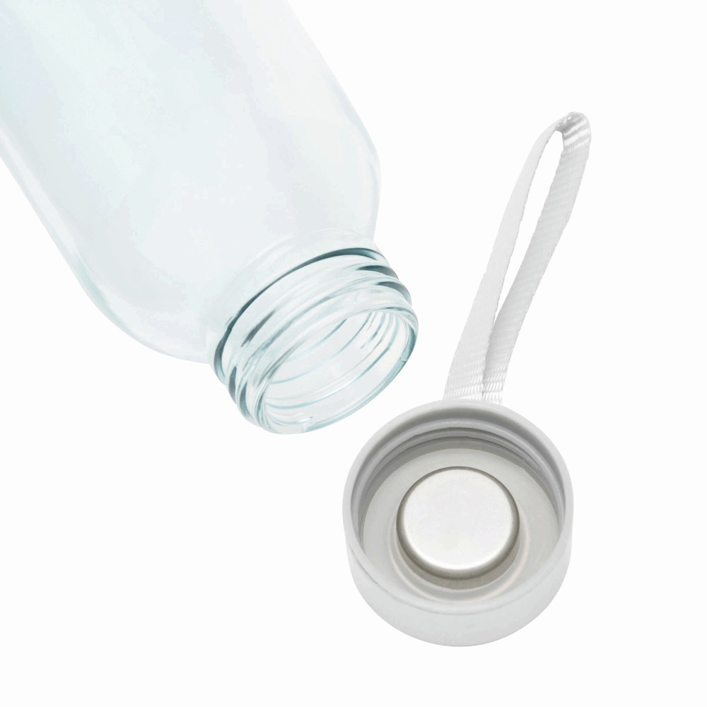 Glas-Trinkflasche TAKE SMART: Edelstahldeckel mit Schraubverschluss, Silikon-Dichtring und Handschlaufe, Füllmenge ca. 500 ml, in Geschenkbox